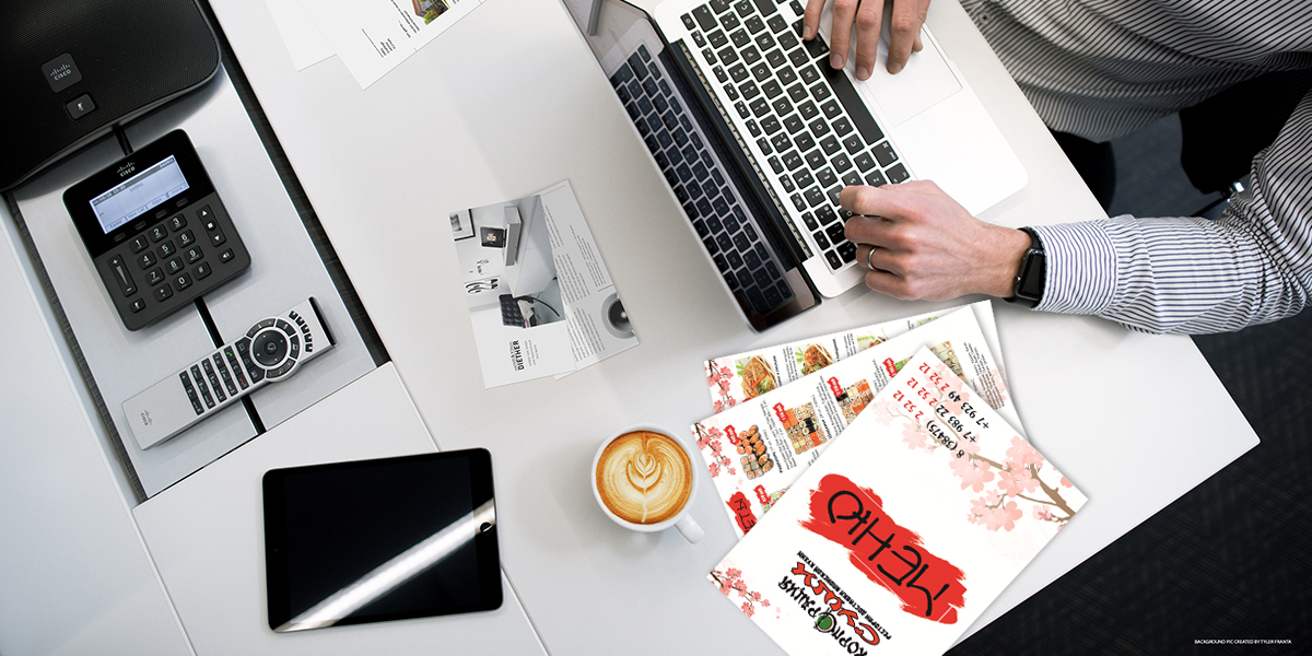 В меню повторяется цветовая гамма визиток, а также используются элементы общего стиля ресторана (шрифты, цвета).