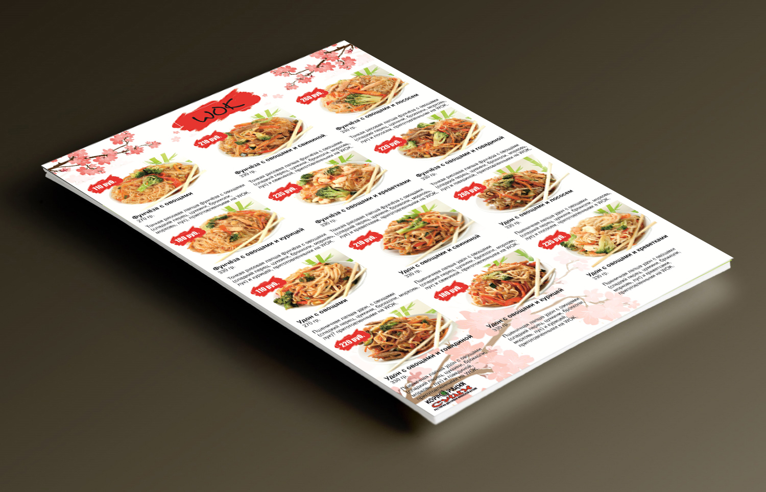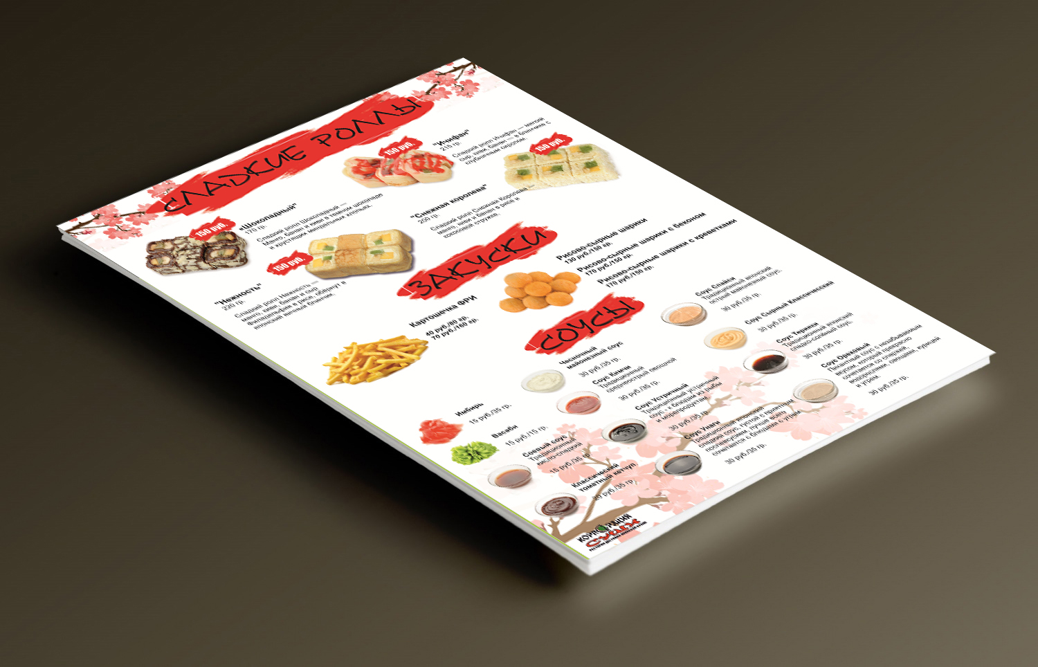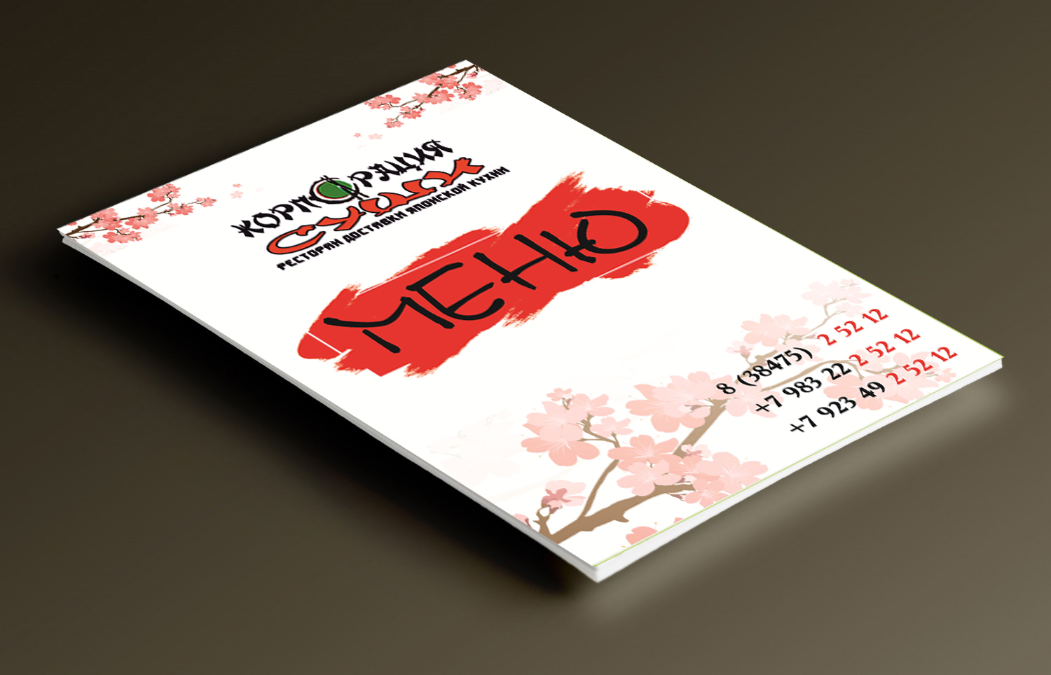 Для Ресторан доставки японской кухни "Корпорация Суши" был разработан макет меню согласно стиля созданных ранее визиток.