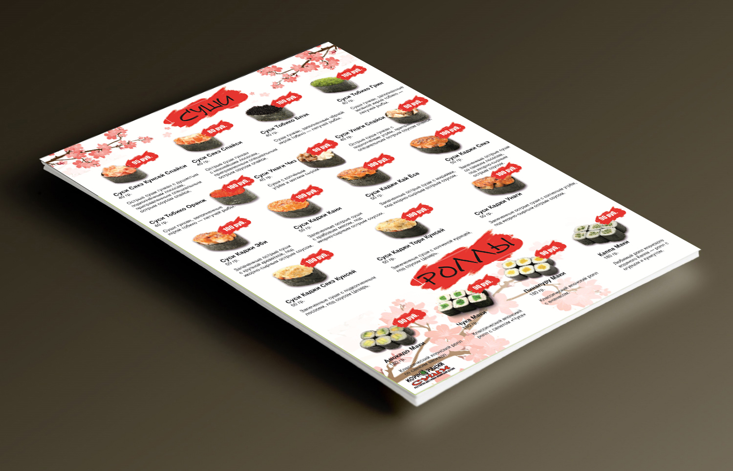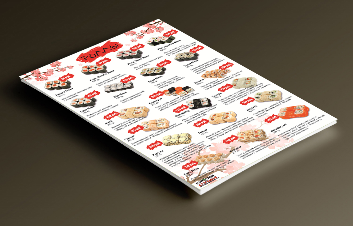 Меню для ресторана доставки японской кухни "Корпорация суши"