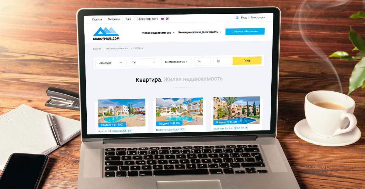 Сайт сервиса CIANCYPRUS по аренде и продаже жилой и коммерческой недвижимости на Кипре