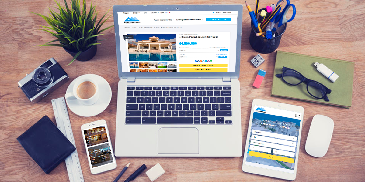 Сайт разработан для CIANCYPRUS — одного из крупнейших сервисов по работе с недвижимостью на Кипре. На сайте представлена актуальная база данных объектов недвижимости на Кипре: виллы и апартаменты, коммерческая недвижимость, земельные участки и многое другое от проверенных компаний.