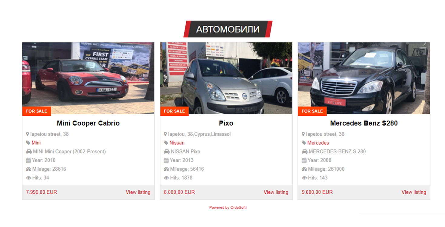 Website for AUTOLIFE car service, based in Cyprus, was created on the basis of CMS Joomla using a ready-made template, which was significantly improved.
