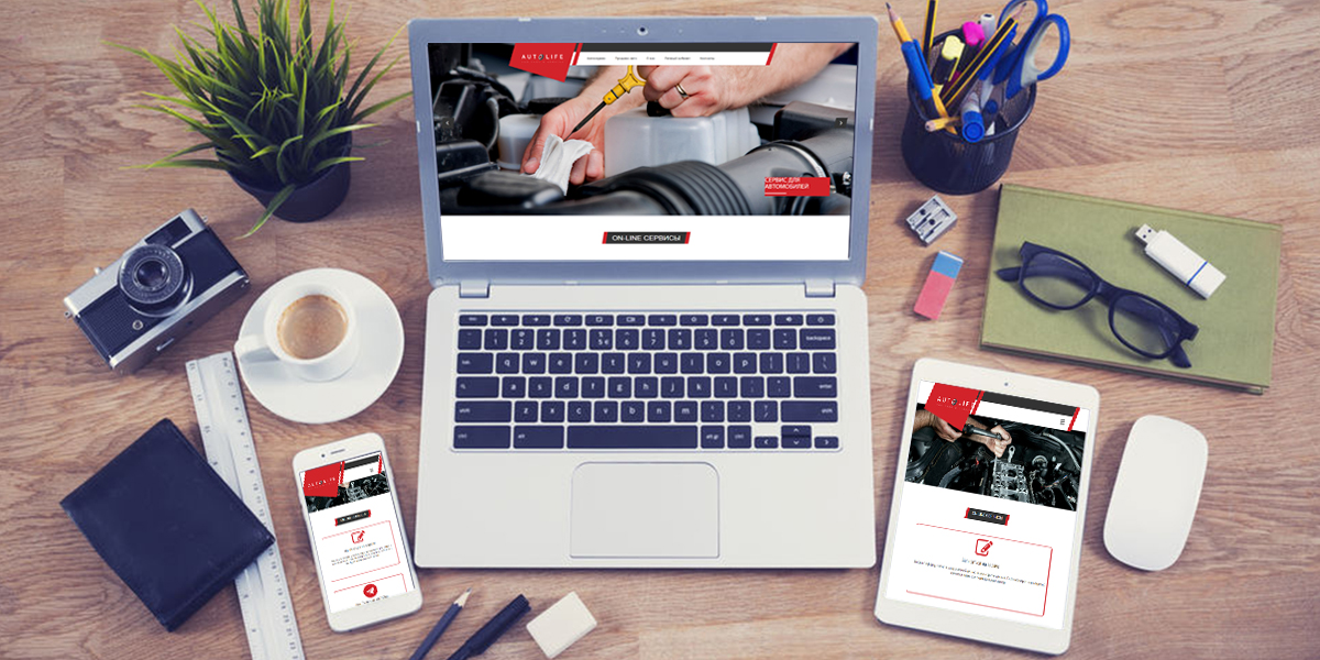 The AUTOLIFE car service website has an adapted version that ensures comfortable browsing of the website from any device: PC, laptop, tablet, smartphone.