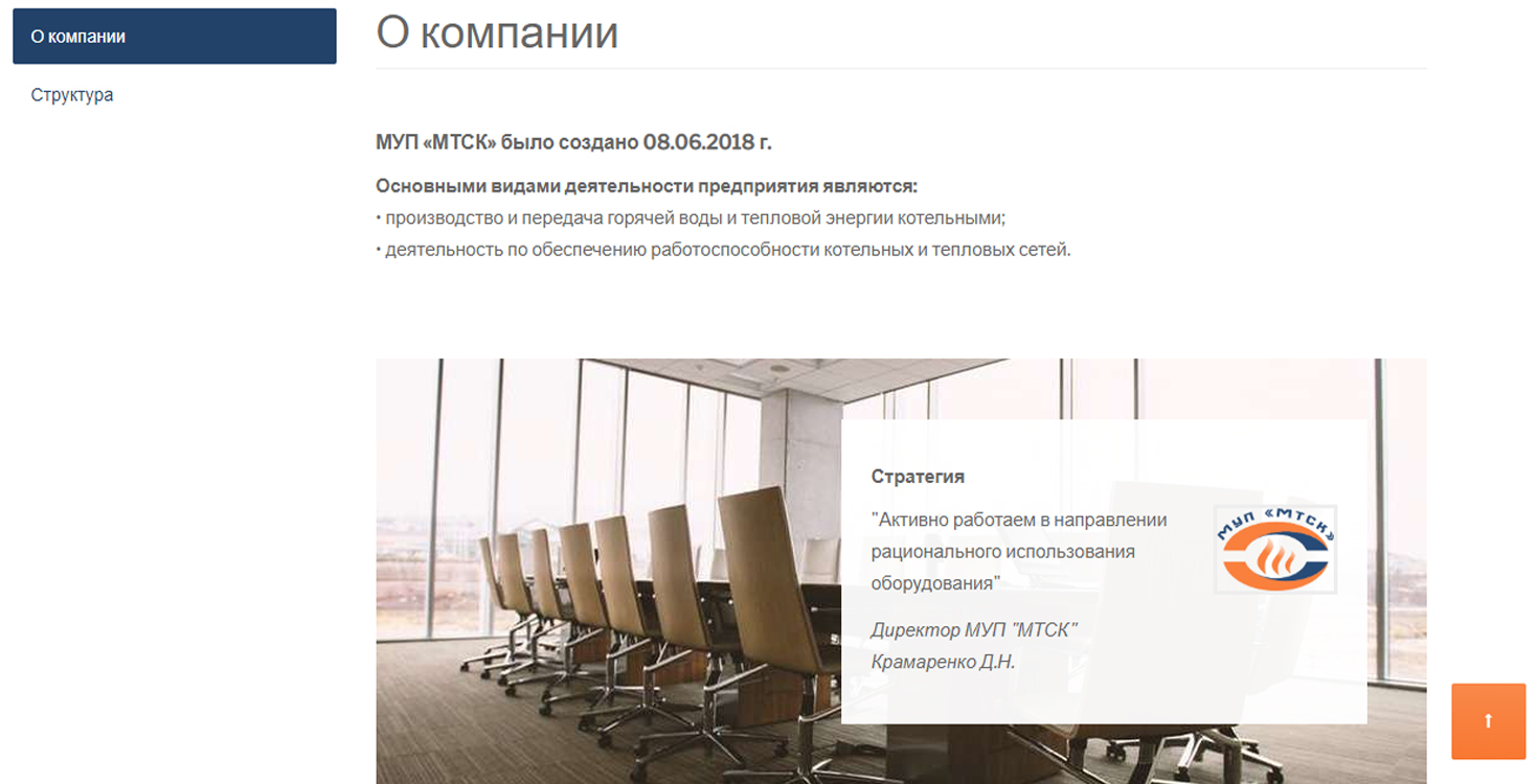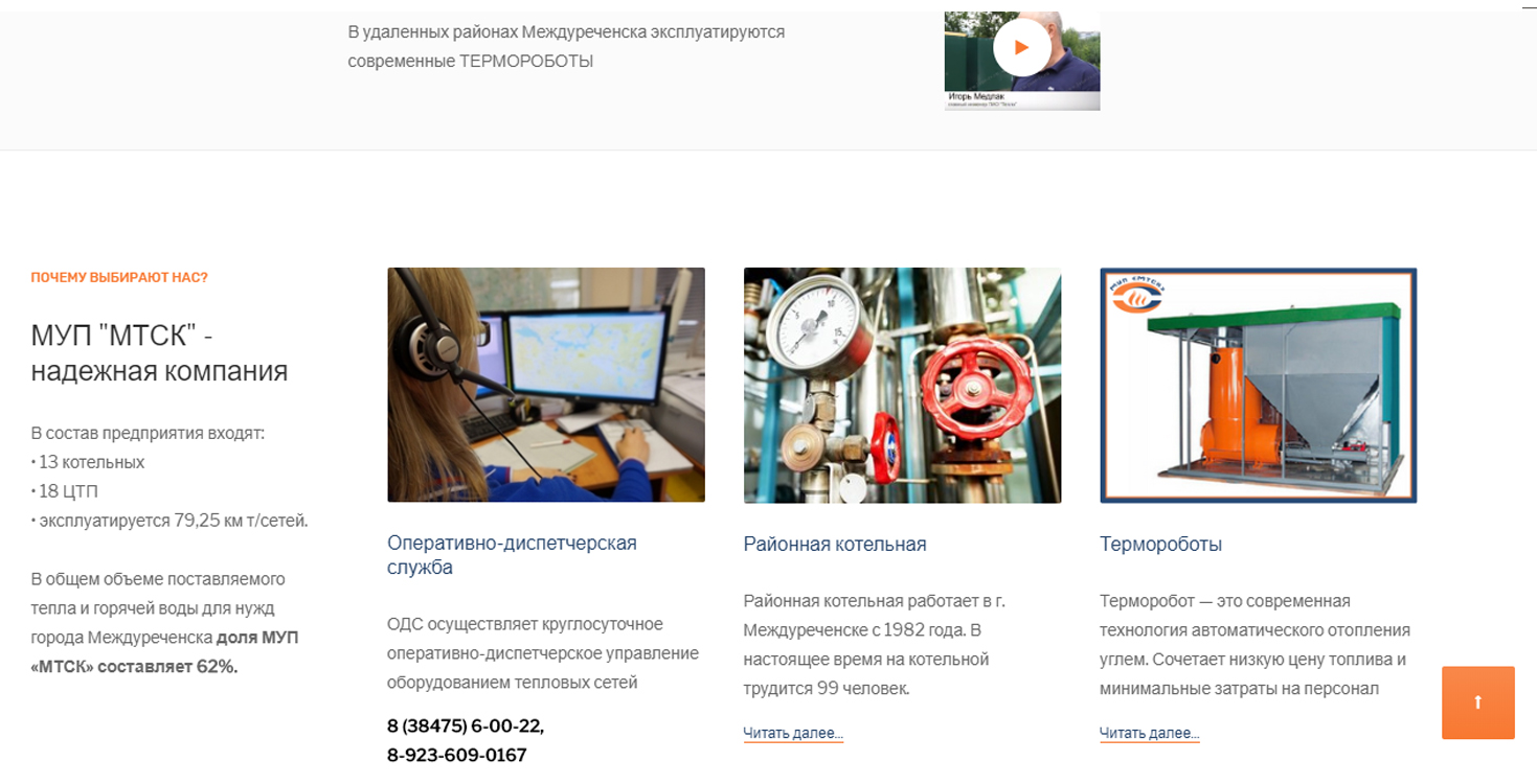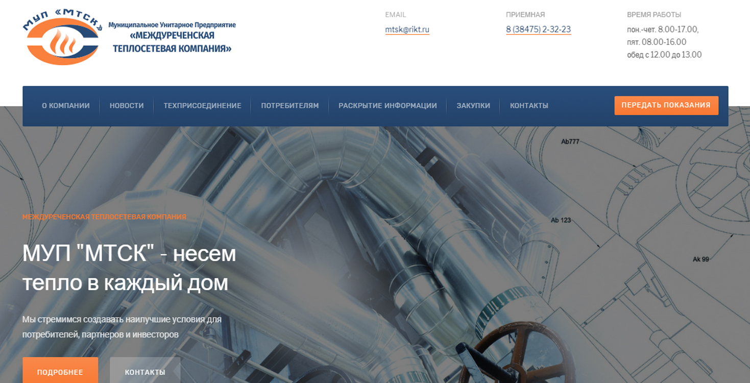 Корпоративный сайт для ресурсоснабжающей компании МУП "МТСК" (г. Междуреченск)