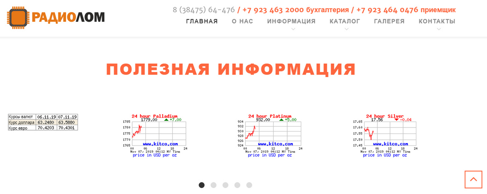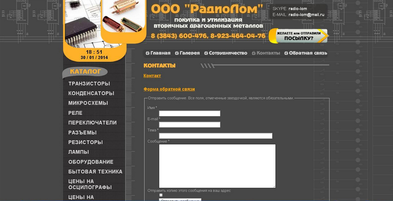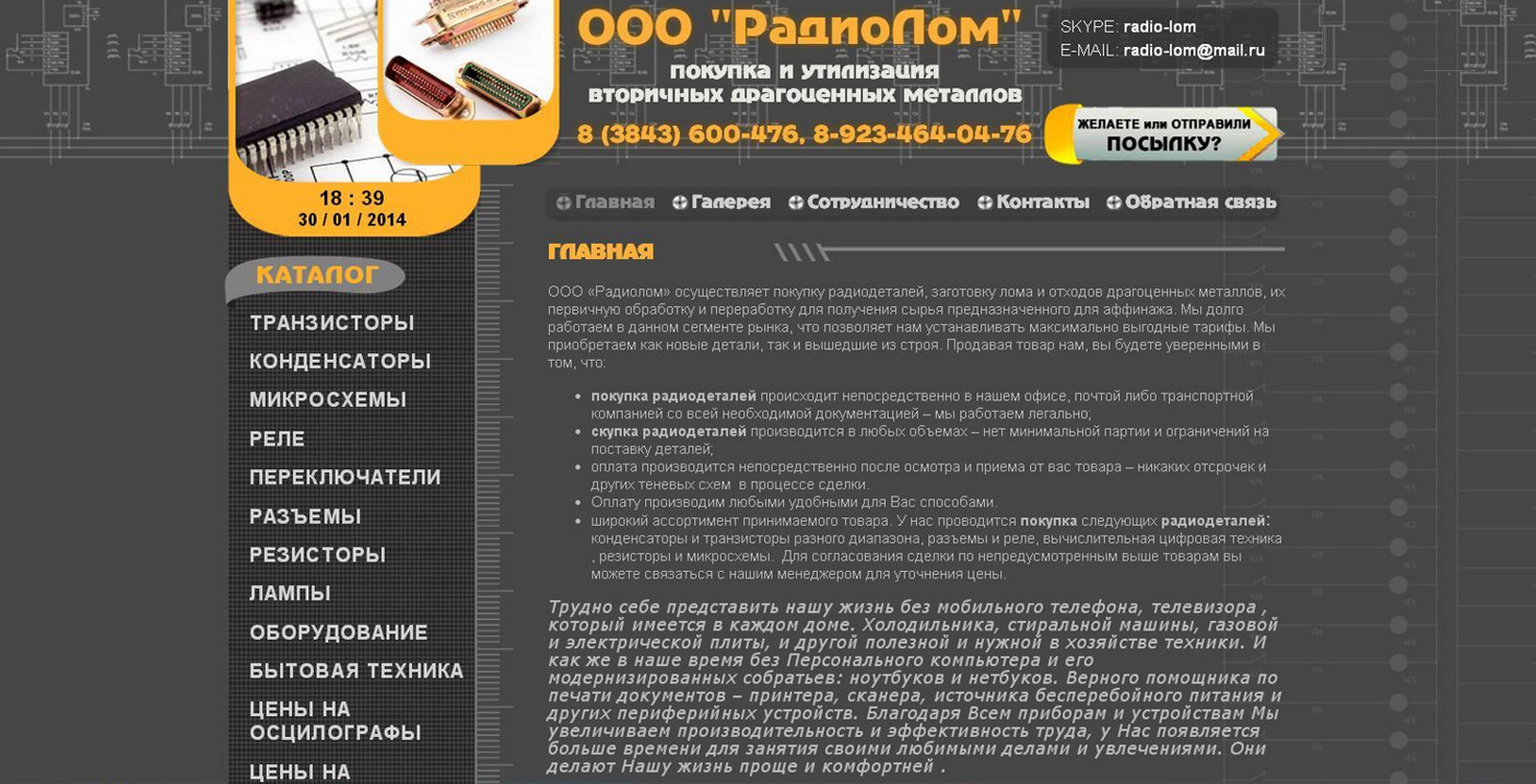 Согласно технического задания, сайт должен был содержать информацию для физических и юридических лиц о возможности сдачи металла и компонентов, цен и условий их реализации. Для этого на сайте создан каталог продукции, а для детального ознакомления с продукцией внедрен модуль «Галерея».