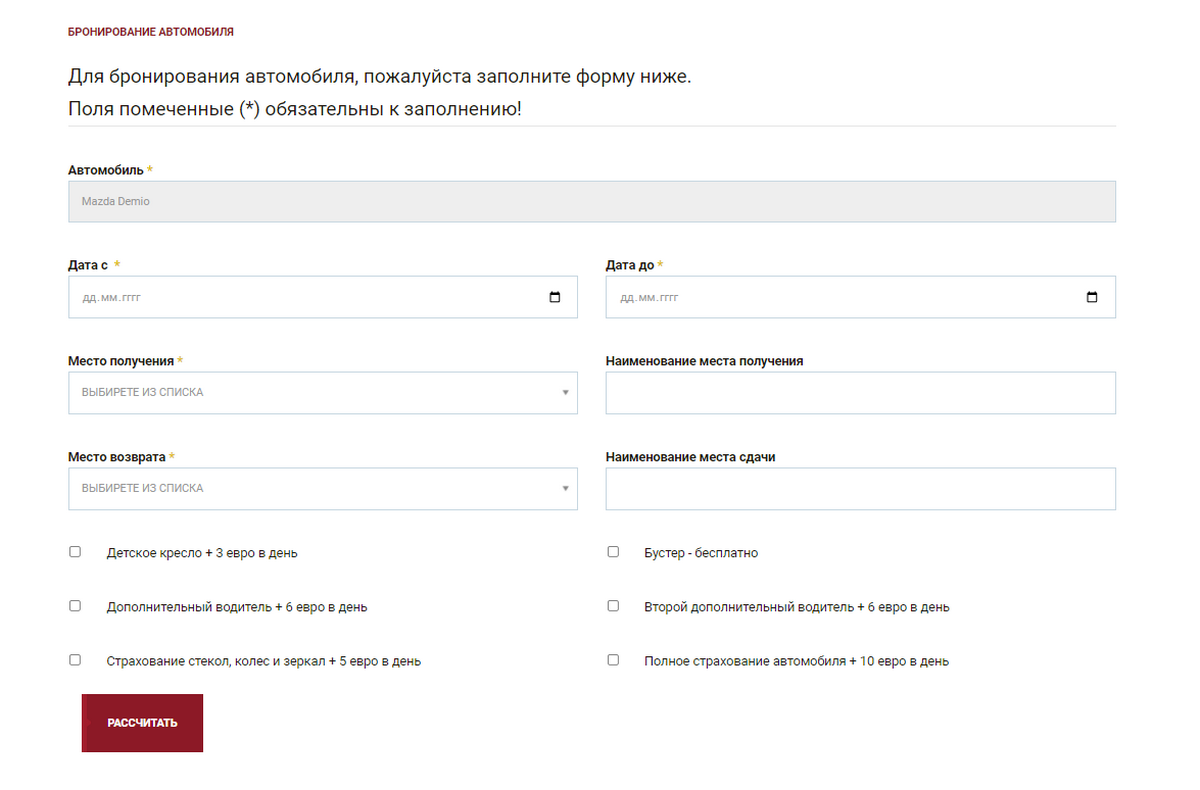 Клиент может в режиме online подобрать и забронировать прокатный автомобиль на Кипре, заполнив специальную форму предварительного заказа.