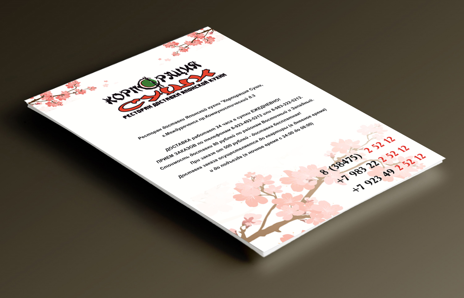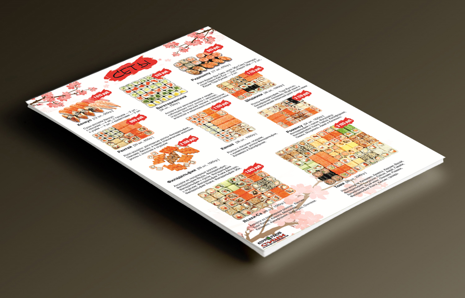 Для Ресторан доставки японской кухни "Корпорация Суши" был разработан макет меню согласно стиля созданных ранее визиток.
