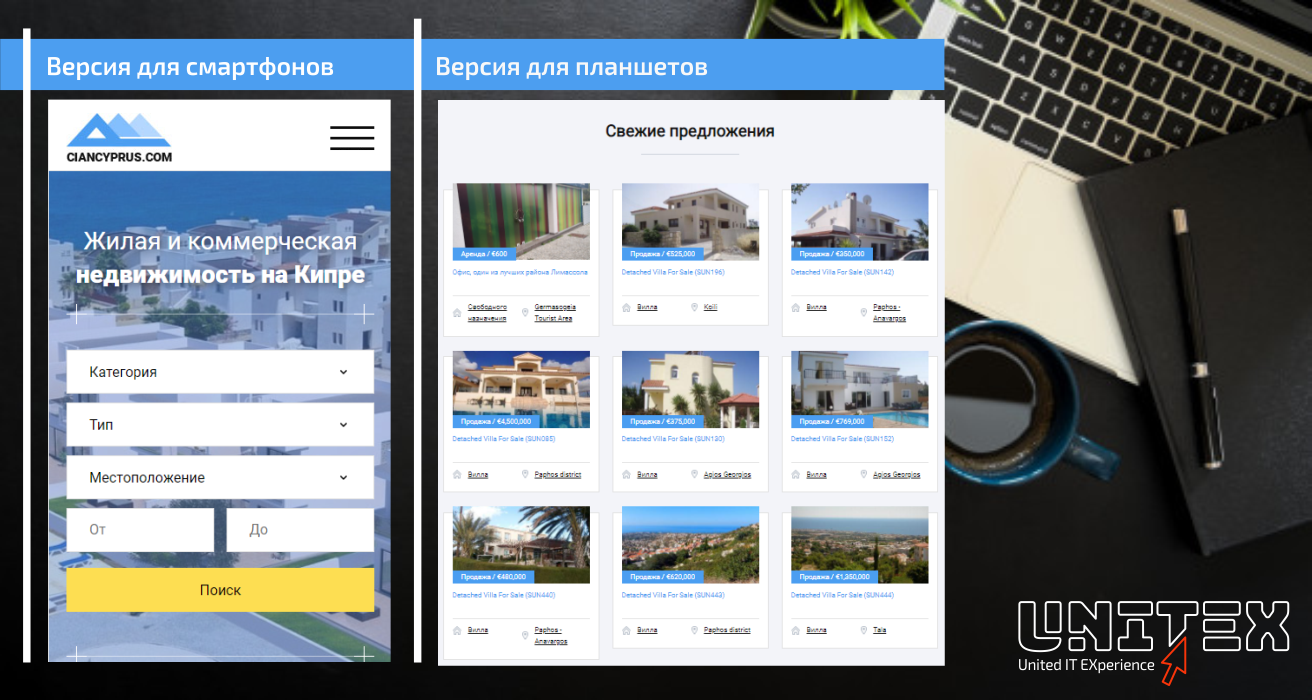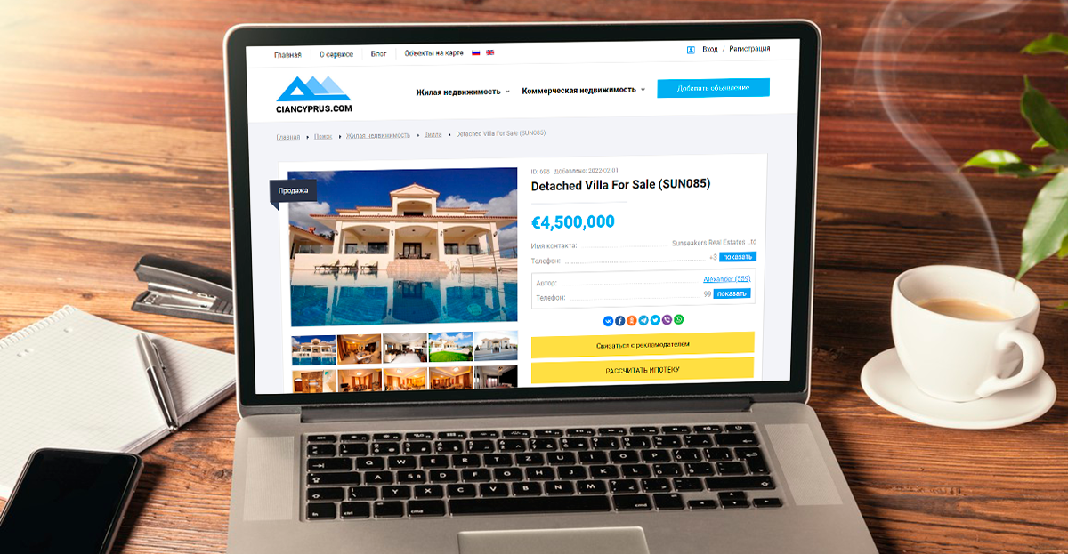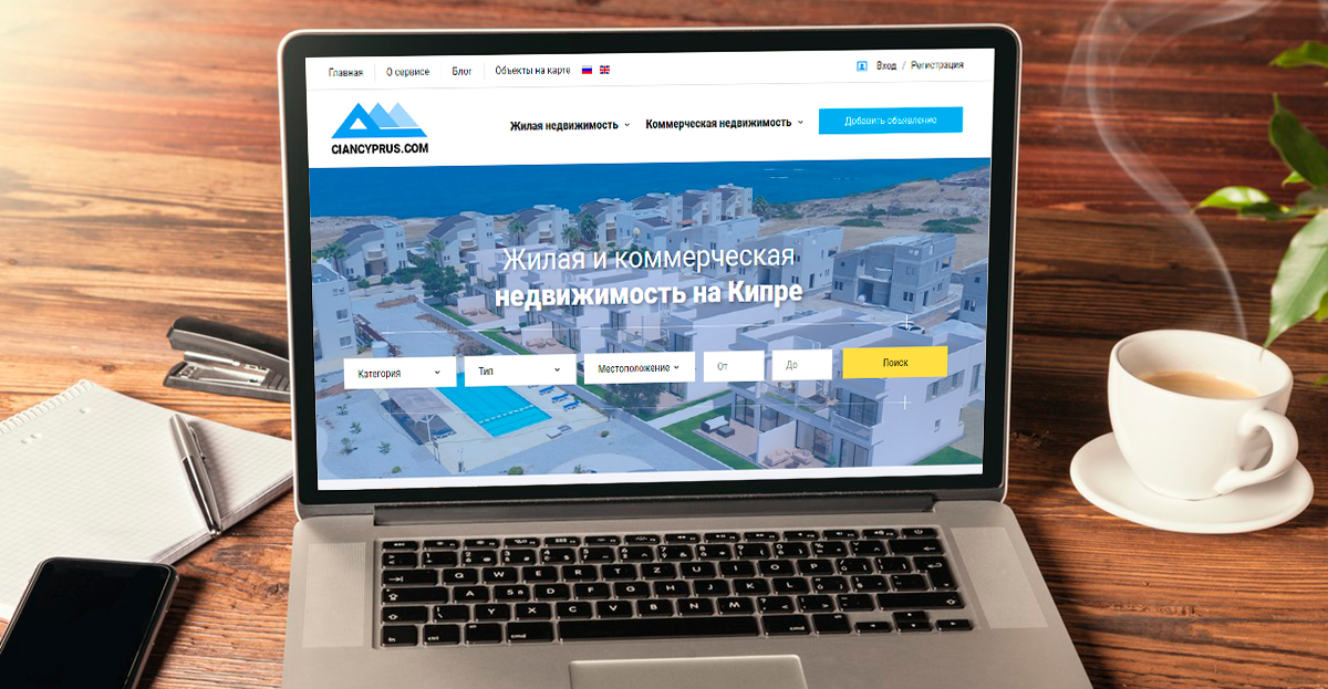 Сайт сервиса CIANCYPRUS по аренде и продаже жилой и коммерческой недвижимости на Кипре