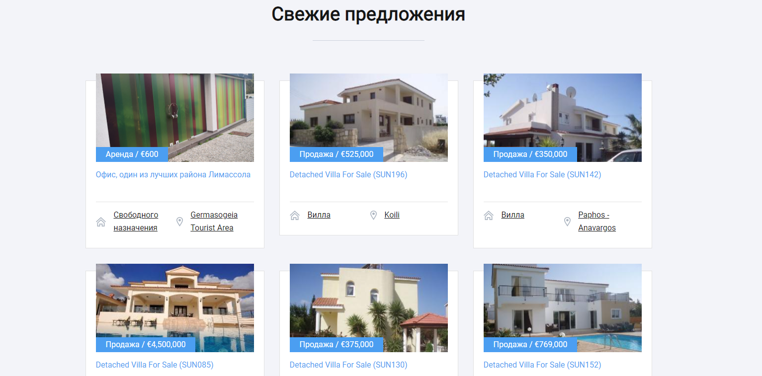 Сайт разработан для CIANCYPRUS — одного из крупнейших сервисов по работе с недвижимостью на Кипре. На сайте представлена актуальная база данных объектов недвижимости на Кипре: виллы и апартаменты, коммерческая недвижимость, земельные участки и многое другое от проверенных компаний.