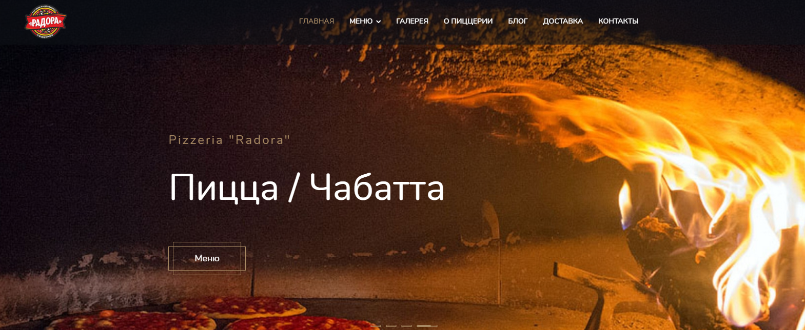 Сайт для пиццерии "RADORA", где готовят настоящую неаполитанскую пиццу на живом огне в дровяной печи