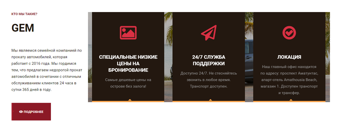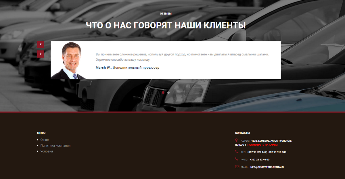 Любой желающий может ознакомиться с отзывами, оставленными на сайте другими клиентами, чтобы удостовериться в профессионализме компании GEM Car Rentals.