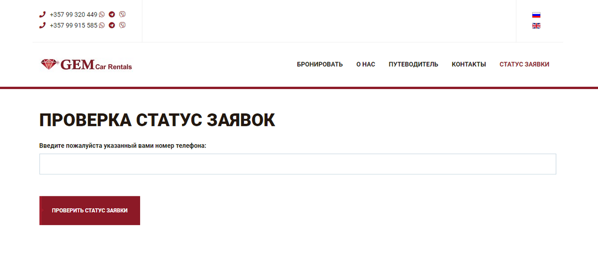 На сайте клиент может проверить статус оставленной заявки, чтобы убедиться, что автомобиль действительно зарезервирован за ним.