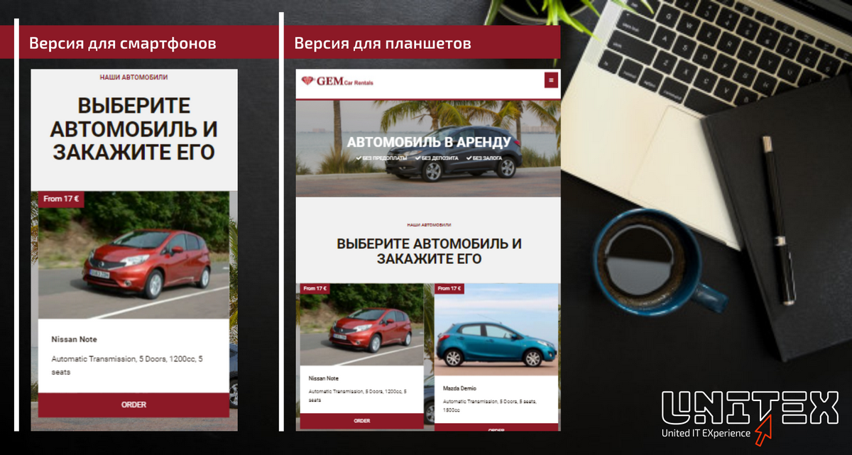Сайт имеет адаптивную под мобильные устройства версию, что дает клиентам возможность пользоваться интернет-ресурсом с любого устройства, в том числе смартфона или планшета.