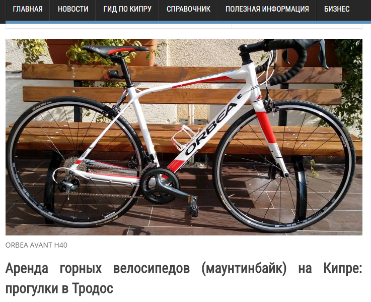 "Прокат велосипедов в Лимассоле расположен в самом центре туристической зоны, в двух минутах ходьбы от одного из самых популярных пляжей Дассуди. Прямо от офиса, взяв велосипед в аренду, можно отправиться на прогулку вдоль набережной, двигаясь по специально оборудованной дорожке".