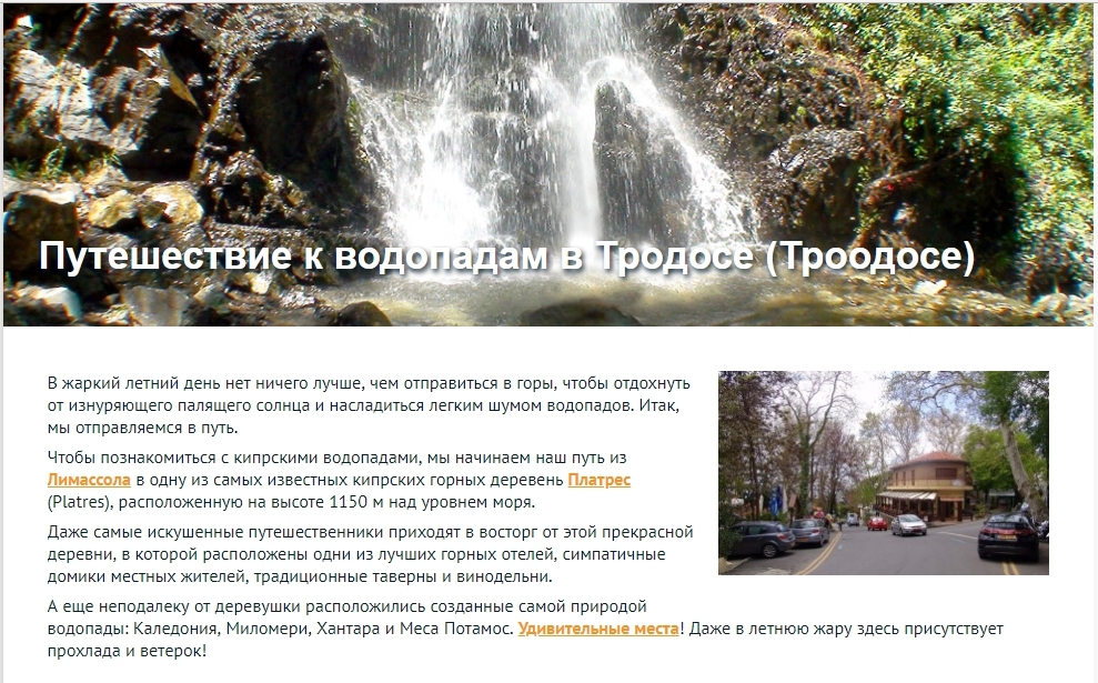 "Чтобы познакомиться с кипрскими водопадами, мы начинаем наш путь из Лимассола в одну из самых известных кипрских горных деревень Платрес (Platres), расположенную на высоте 1150 м над уровнем моря". (Read more at: https://www.kiprinform.com/cyprus_tours_drive/puteshestvie-k-vodopadam-v-trodose/)